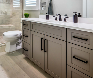 Explore our additional bathroom projects that are sure to inspire. Whether you prefer custom cabinets or semi-custom options, each project offers different door styles, finishes, and accessories for you to scroll through to assist you in designing a space that truly reflects your unique style. No matter if your taste leans towards traditional elegance, modern minimalism, or a blend of both, our diverse selection ensures that you will discover the perfect elements to bring your dream bathroom to life.